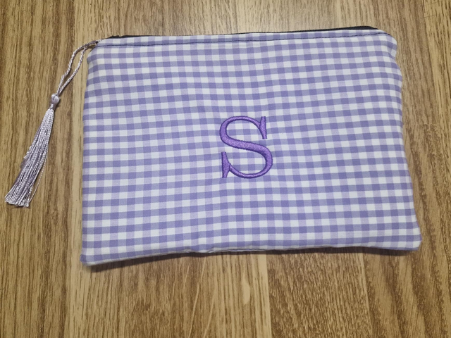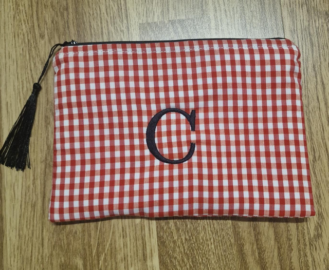 Bolso de mano o neceser con inicial bordada.