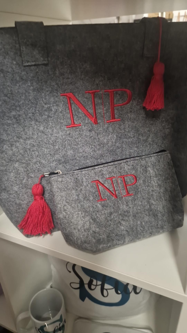 BOLSO Y NECESER FIELTRO BORDADO